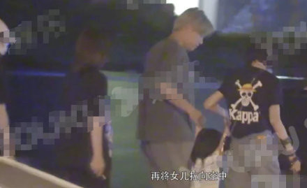 三人一起走在大街上,孩子也许是走累了,黄发男子便将万茜女儿抱在怀里。孩子靠在男子肩头安静地睡着了,像极了一家三口的样子。